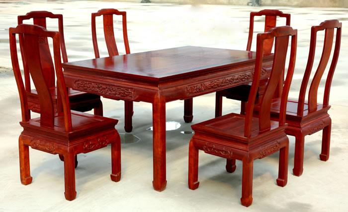 江蘇中尊木業(yè)有限公司餐廳系列產(chǎn)品:如意七件套如意餐枱、如意餐椅,餐廳十一件套富貴圓桌、富貴餐椅等。