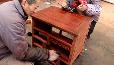 流程三雕刻工序 為了讓紅木家具看上去更美觀,在木工工序完成之后一般都會(huì)用一些或簡單或復(fù)雜的雕花來進(jìn)行裝飾,也就是行業(yè)中所說的雕刻紋飾。雕刻紋飾必須在“認(rèn)榫”完成后進(jìn)行,因?yàn)椤罢J(rèn)榫”時(shí)需要修整,如果先做好雕花再開榫,紋理很難保證雕花部件都在同一平面上,而此時(shí)為了保證雕花...